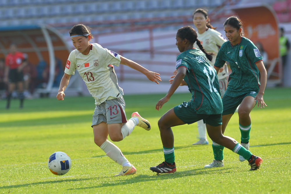 比赛于当地时间下午4点开球,气温高达36摄氏度。面对首次跻身亚洲杯正赛的孟加拉国队,中国队虽然场面占优,但未能组织出有效进攻配合,除王爱芳任意球击中横梁、余星悦错失单刀机会外,上半场机会寥寥。