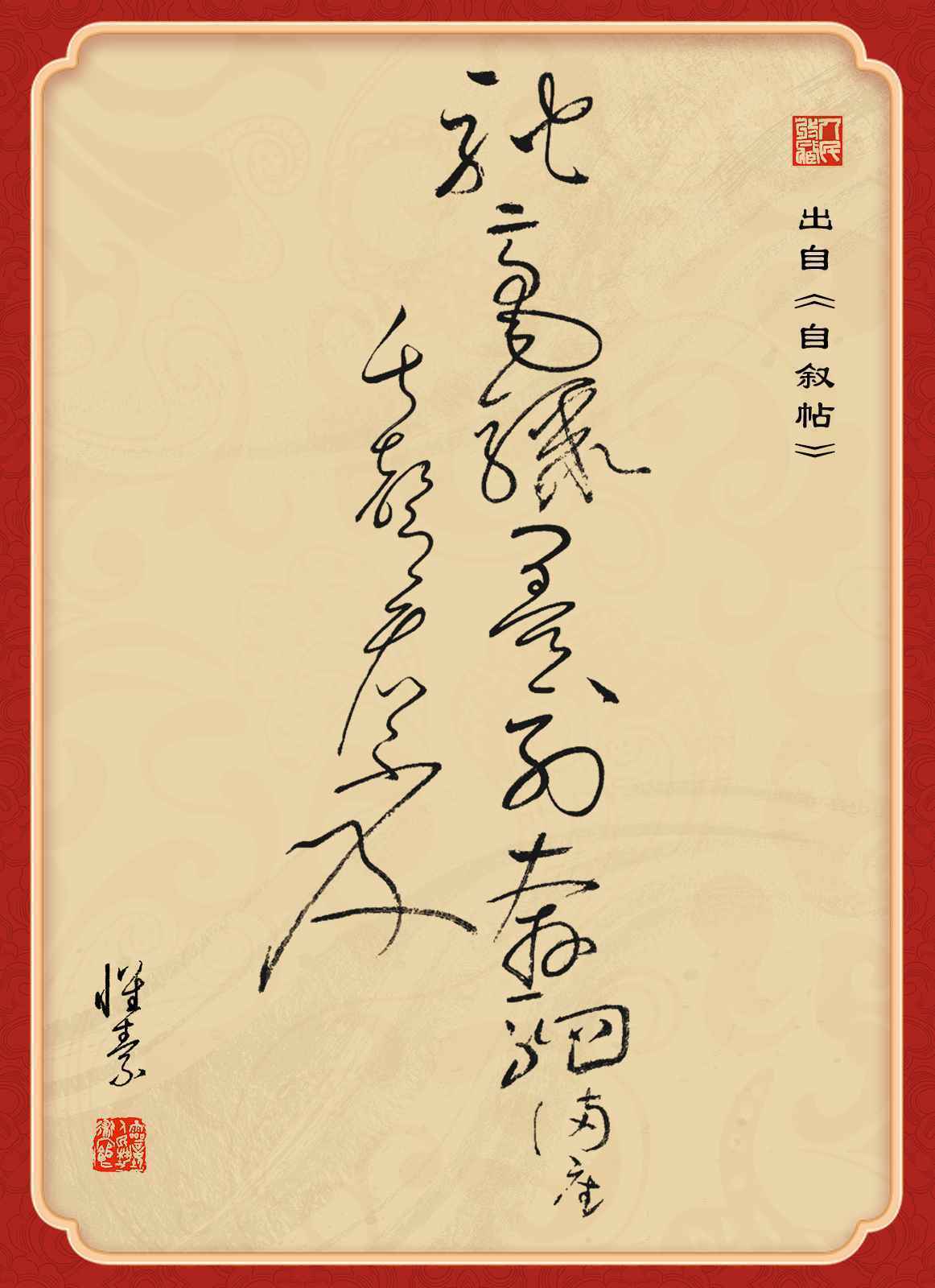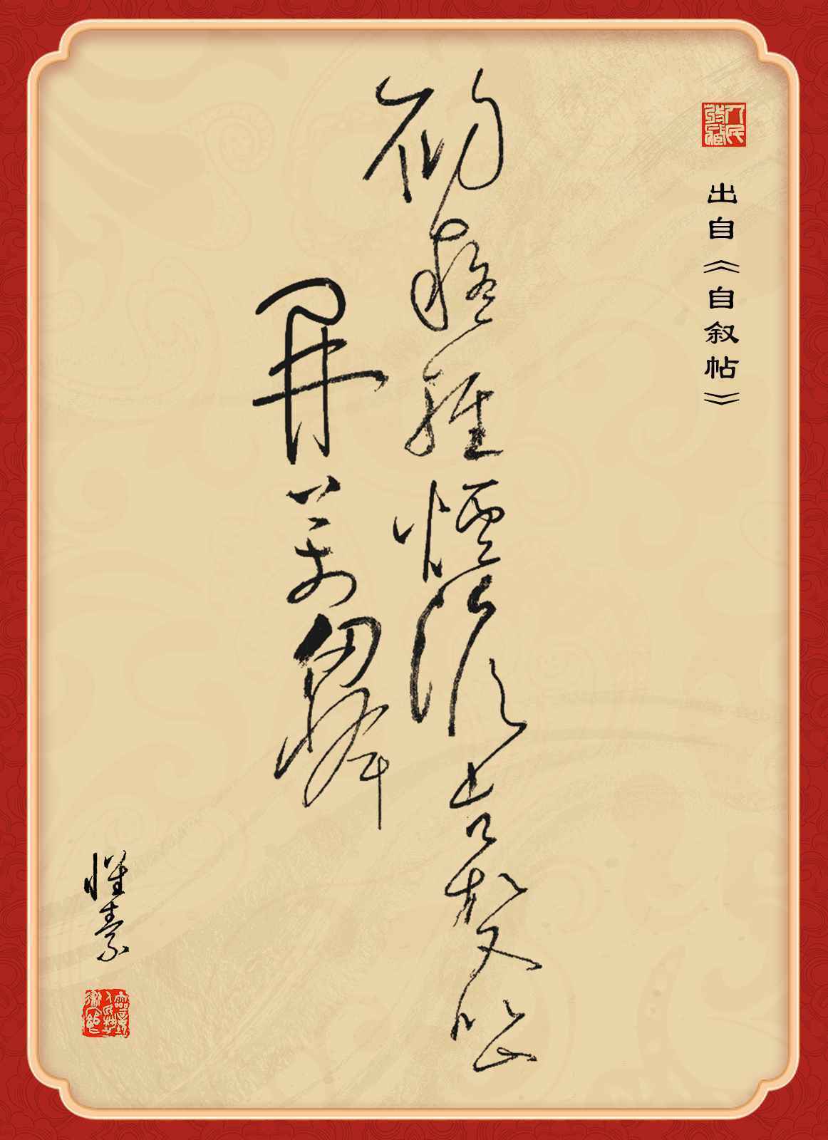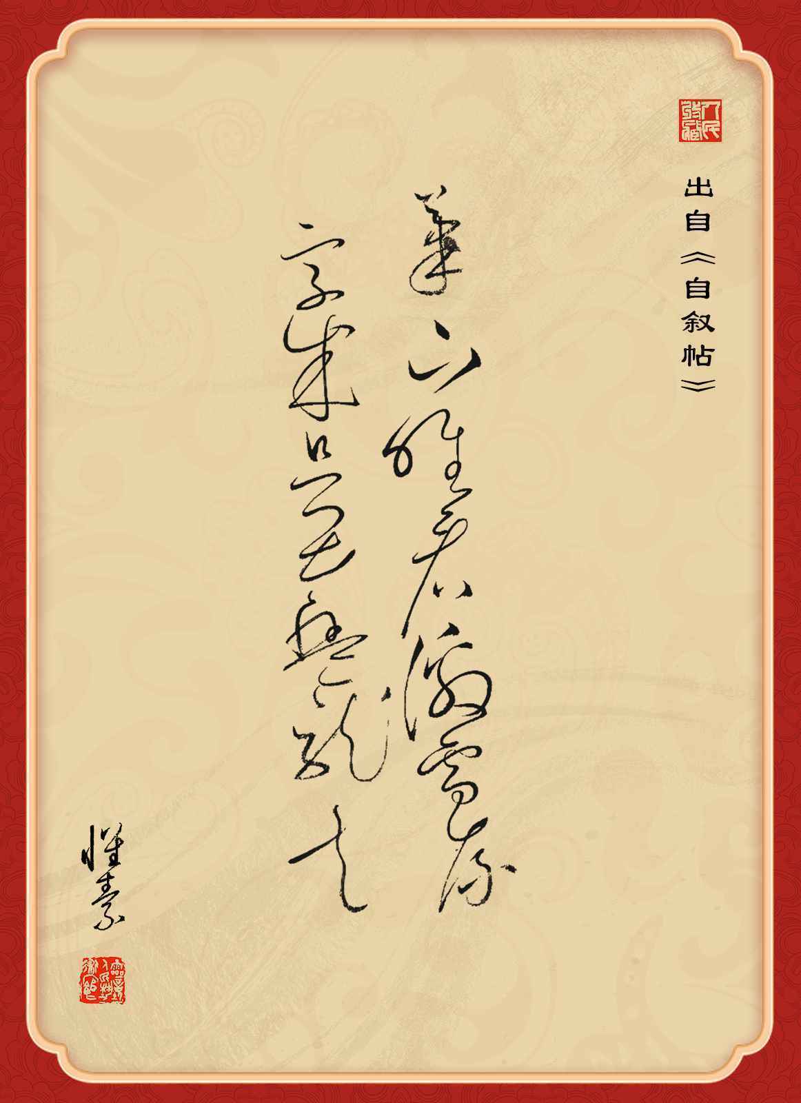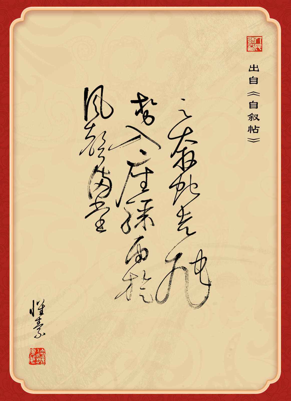 此外,灵境·人民艺术馆选取《自叙帖》中“奔蛇走虺势入座,骤雨旋风声满堂”“初疑轻烟澹古松,又似山开万仞峰”“笔下唯看激电流,字成只畏盘龙走”“驰毫骤墨列奔驷,满座失声看不及”分别制作成四款数字作品,各发行1000份,每款数字作品每位用户可免费领取一份。